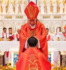 Ebbene, dopo quasi sei mesi da quella sua “elezione”, il 15 ottobre Wu Jianlin è stato ordinato vescovo, in capo a una campagna di promozione di questa sua nomina condotta proprio dal titolare della diocesi Shen Bin, tra l’altro con l’argomento che Wu “doveva comunque essere ordinato, essendo rimasto l’unico non vescovo dei cattolici facenti parte della Conferenza consultiva politica del popolo cinese”.